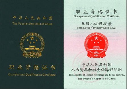 人力资源与社会保障部颁发的国家认证权威证书